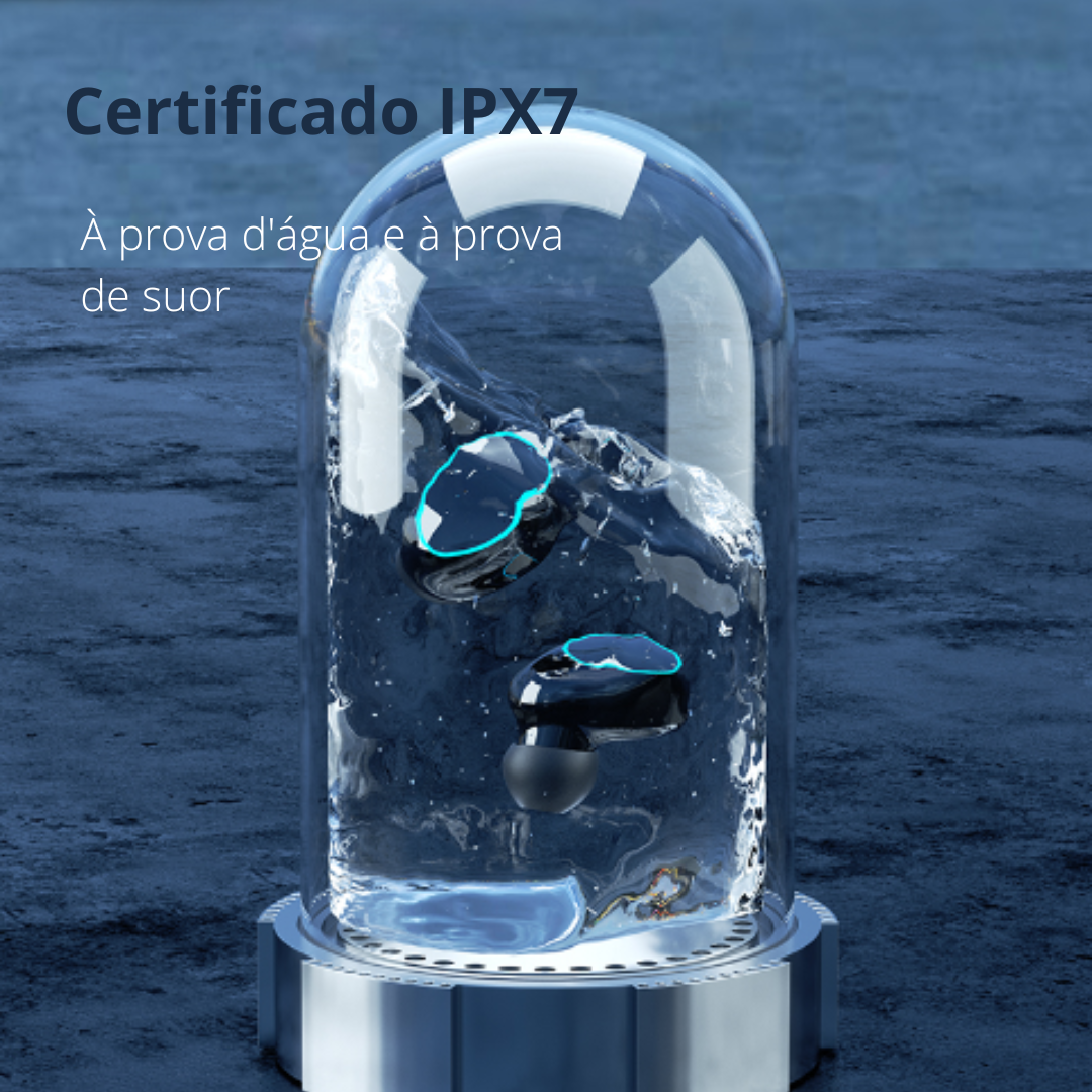 Não se preocupe com a transpiração durante o exercício, use também no banho, o TWS M10 Bluetooth conta com o Certificado IPX7 à prova d'água e à prova de suor .Efetivamente evita que o suor danifique os componentes.